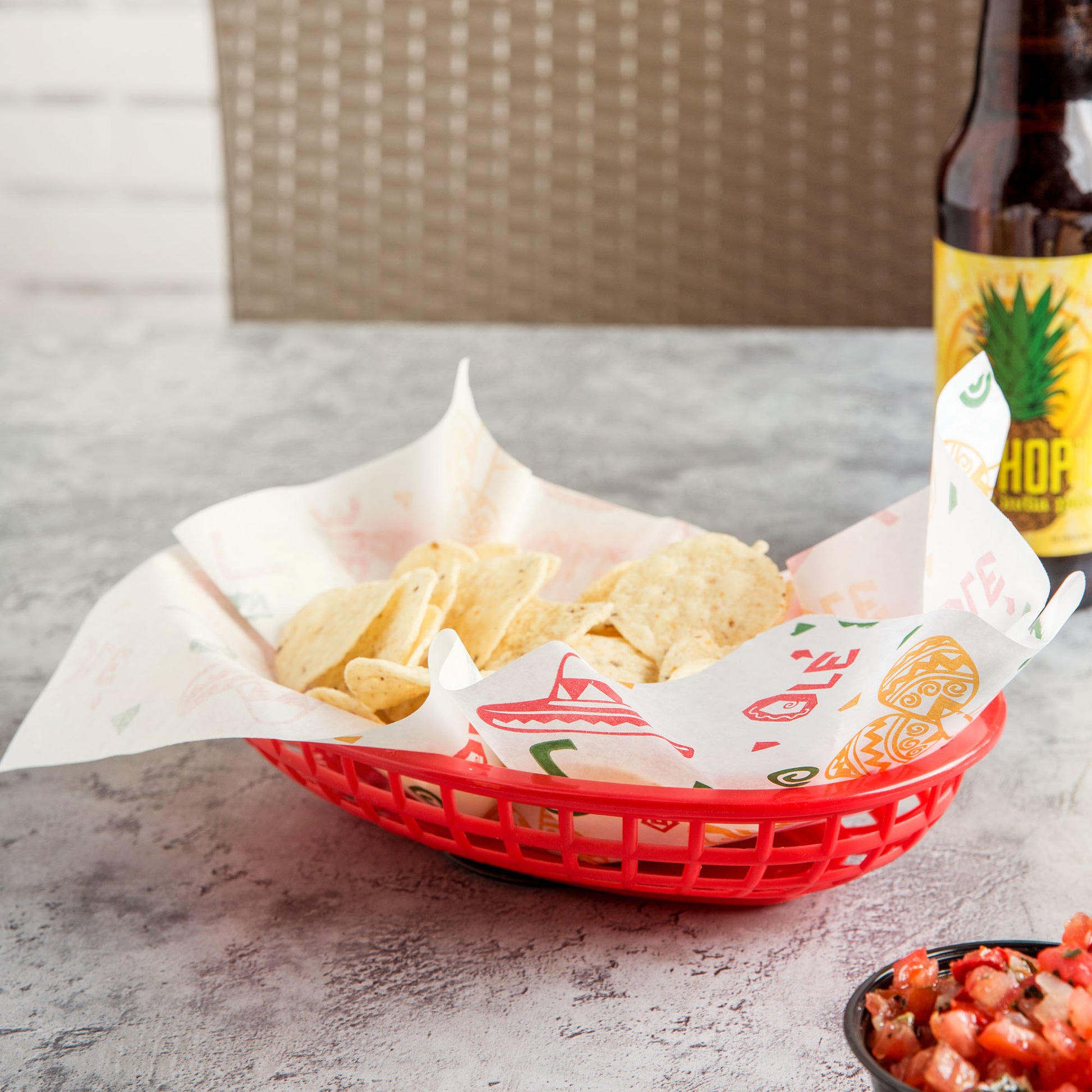 Not only is this paper great for stuffed burritos and shrimp tacos, but it also serves as a liner in food baskets! Bring a festive flair to lunch service as you serve sandwiches, subs, or appetizers.