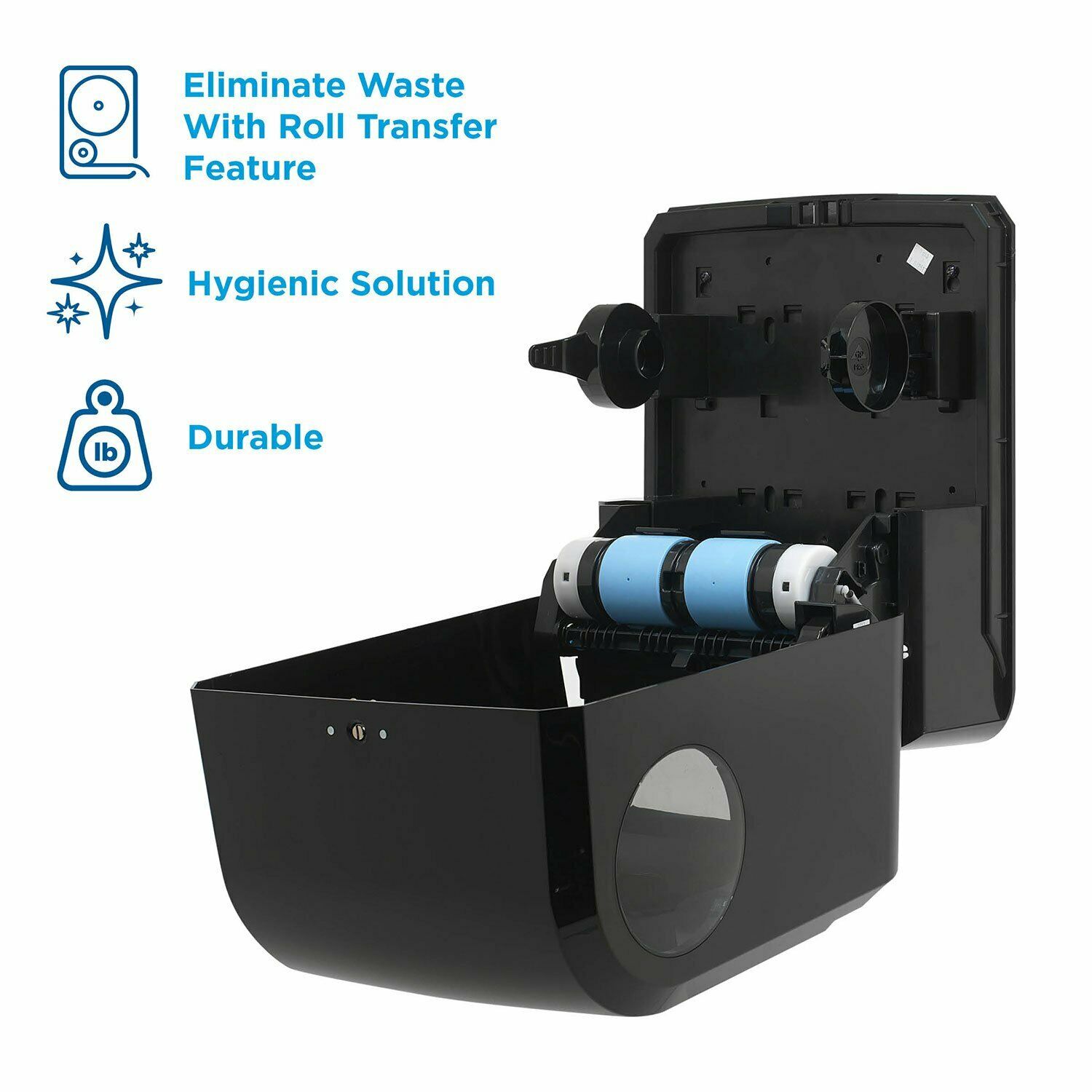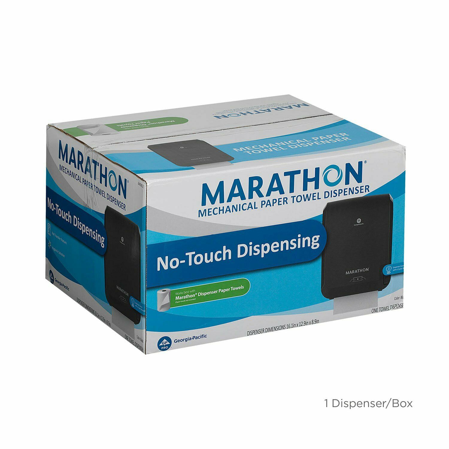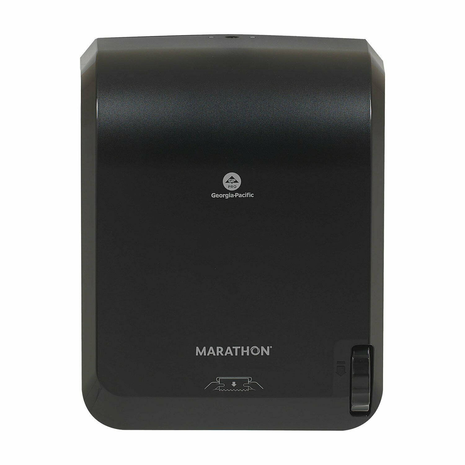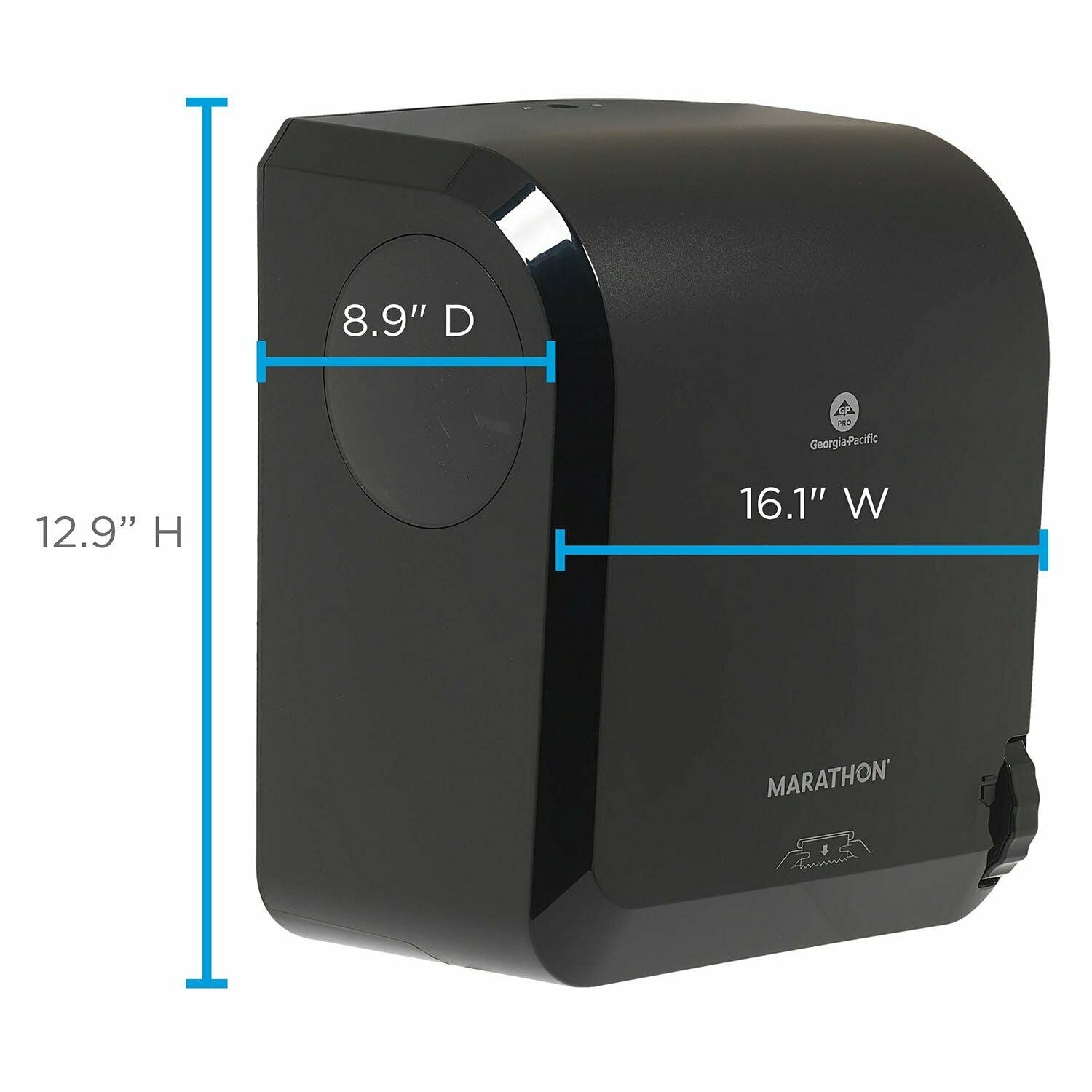 With hands-free operation, this paper towel dispenser helps reduce the spread of germs. It's terrific for extended service intervals and steady traffic areas. This dispenser features a durable construction and a side cover that's see-through, making it simple to monitor for refills. It can hold up to 700' of paper towels when used with the Marathon Dispenser Paper Towels Roll (sold separately) with soft, absorbent sheets that are also great for hand drying. In a black color, this unit can blend in with most office decors. The no-touch, one-at-a-time dispensing is ideal for minimizing waste. This dispenser will keep the paper towels dry, clean and hygienic.