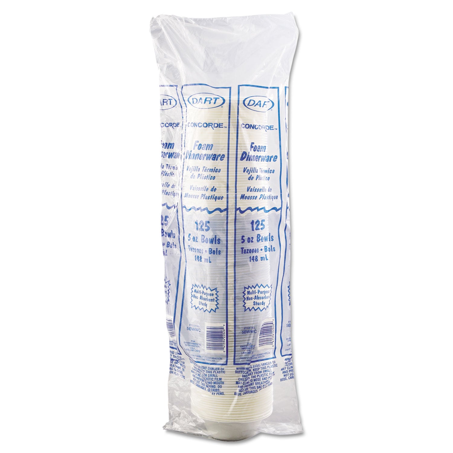 DART CONCORDE NON-LAMINATED BOWL 5 TO 6 OZ WHITE SLEEVE / 125 SINGLES
