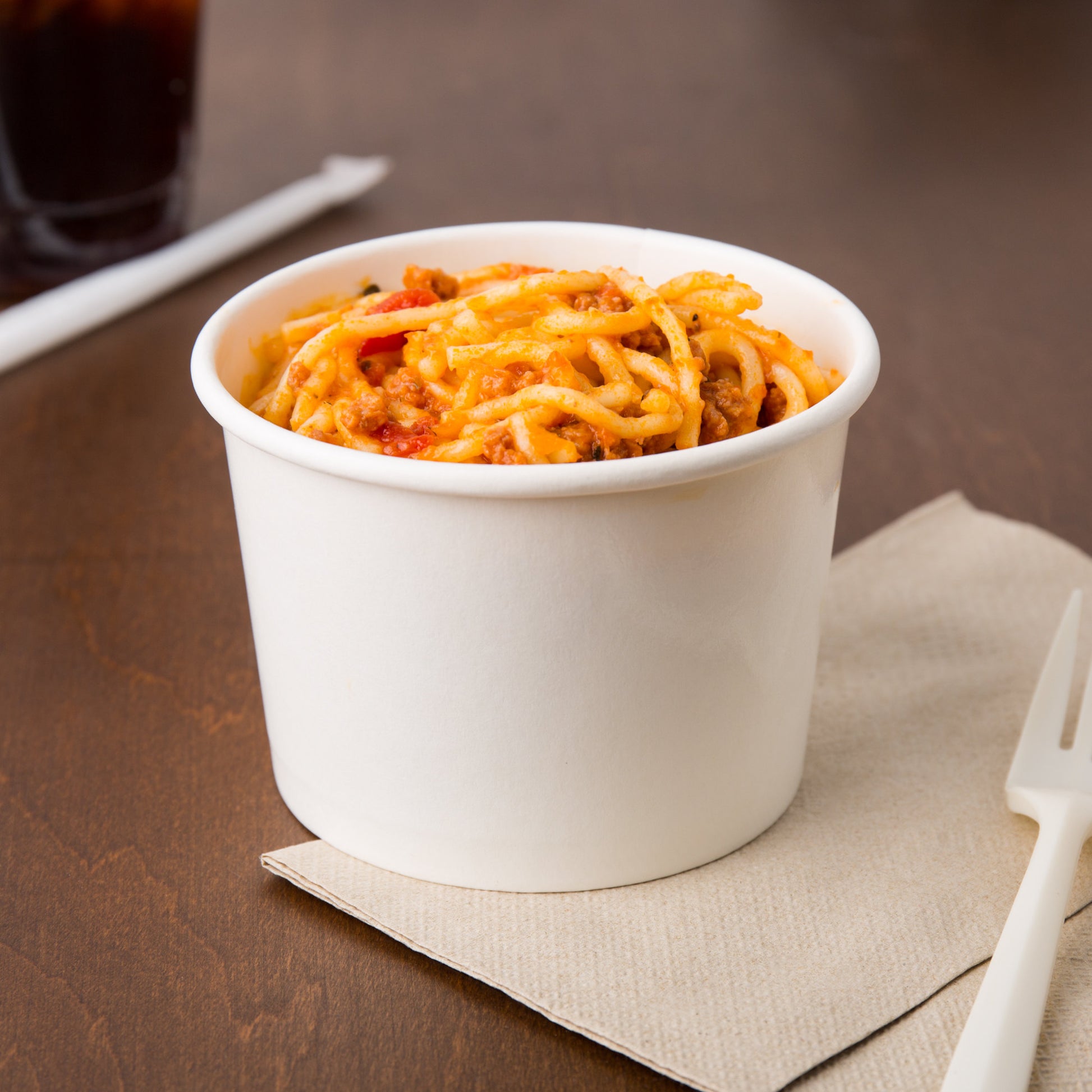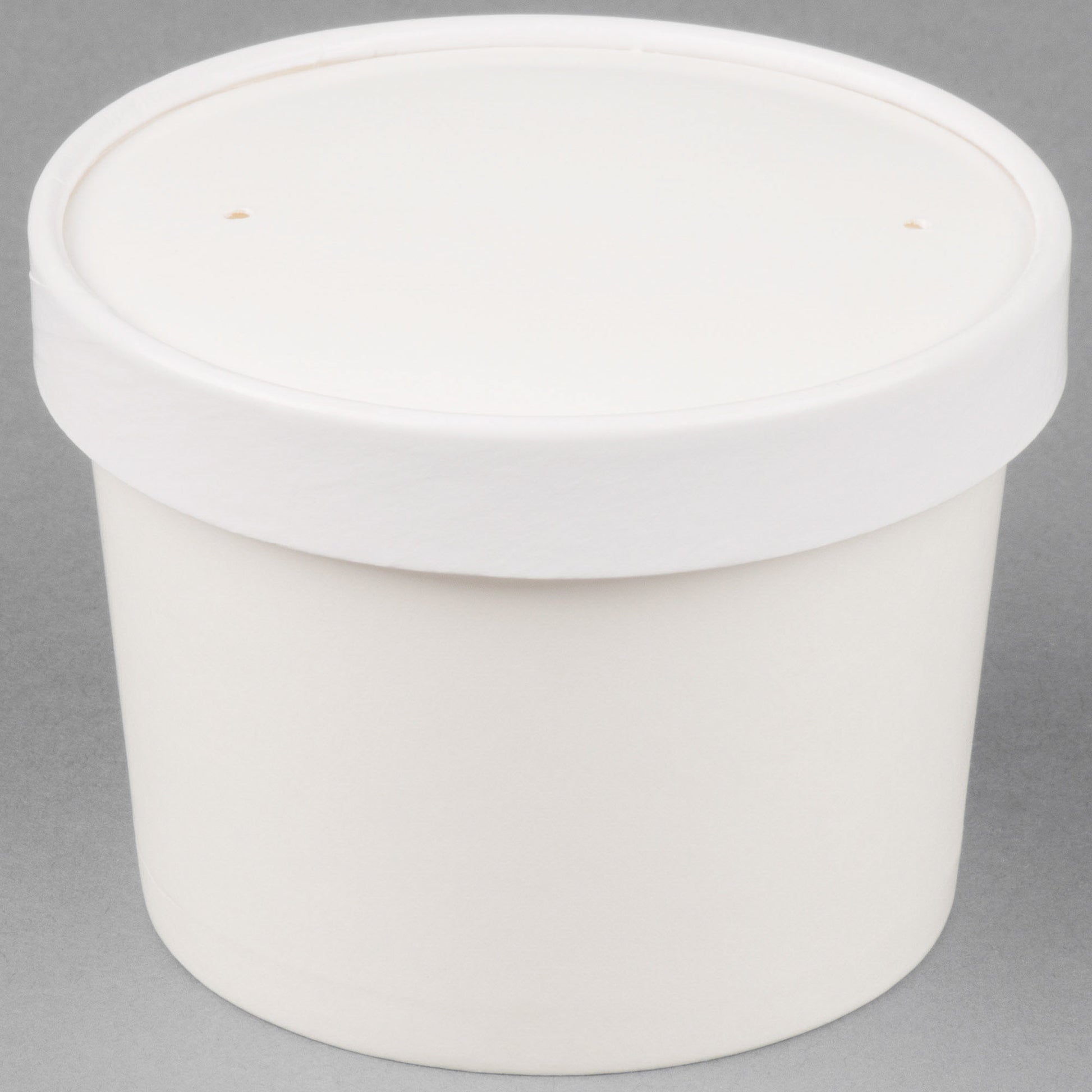 Made from double poly-coated paperboard, the container in this container and lid combo is durable and moisture resistant. Use it for serving anything from light chicken noodle soup to thick, hearty stews, ice cold frozen yogurt to gelato. It ensures the combined rigidity and reliability you need in a take-out paper hot food cup and lid combo.