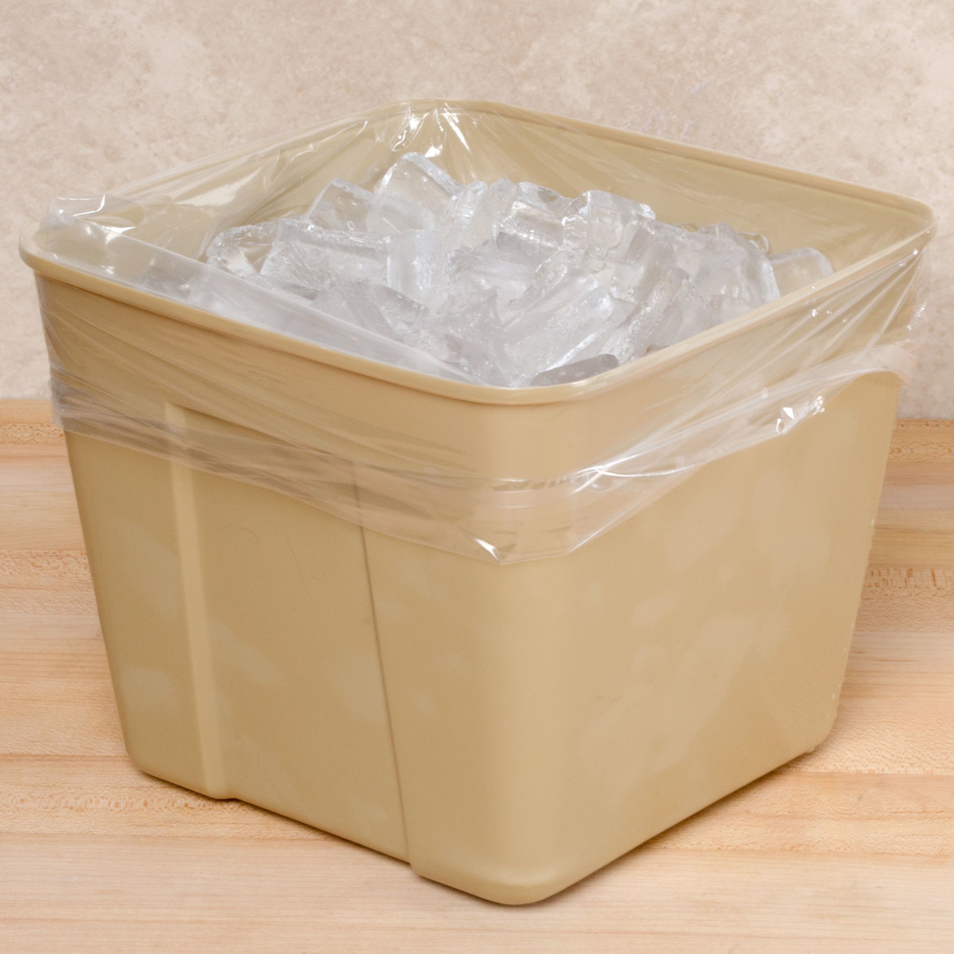 Provide a sanitary way for guests to use your in-room ice buckets, by offering this 12" x 12" poly ice bucket liner alongside your 3 qt. ice buckets. This ice bucket liner simply slides into your ice buckets to provide an added layer of protection from bacteria and germs. It's made of 0.24 gauge high-density polyethylene plastic for durability and resistance to tears from sharp ice cubes. With this ice bucket liner, guests will be able to chill sodas, water, and mixed drinks with your ice without worrying about harmful bacteria or germs.