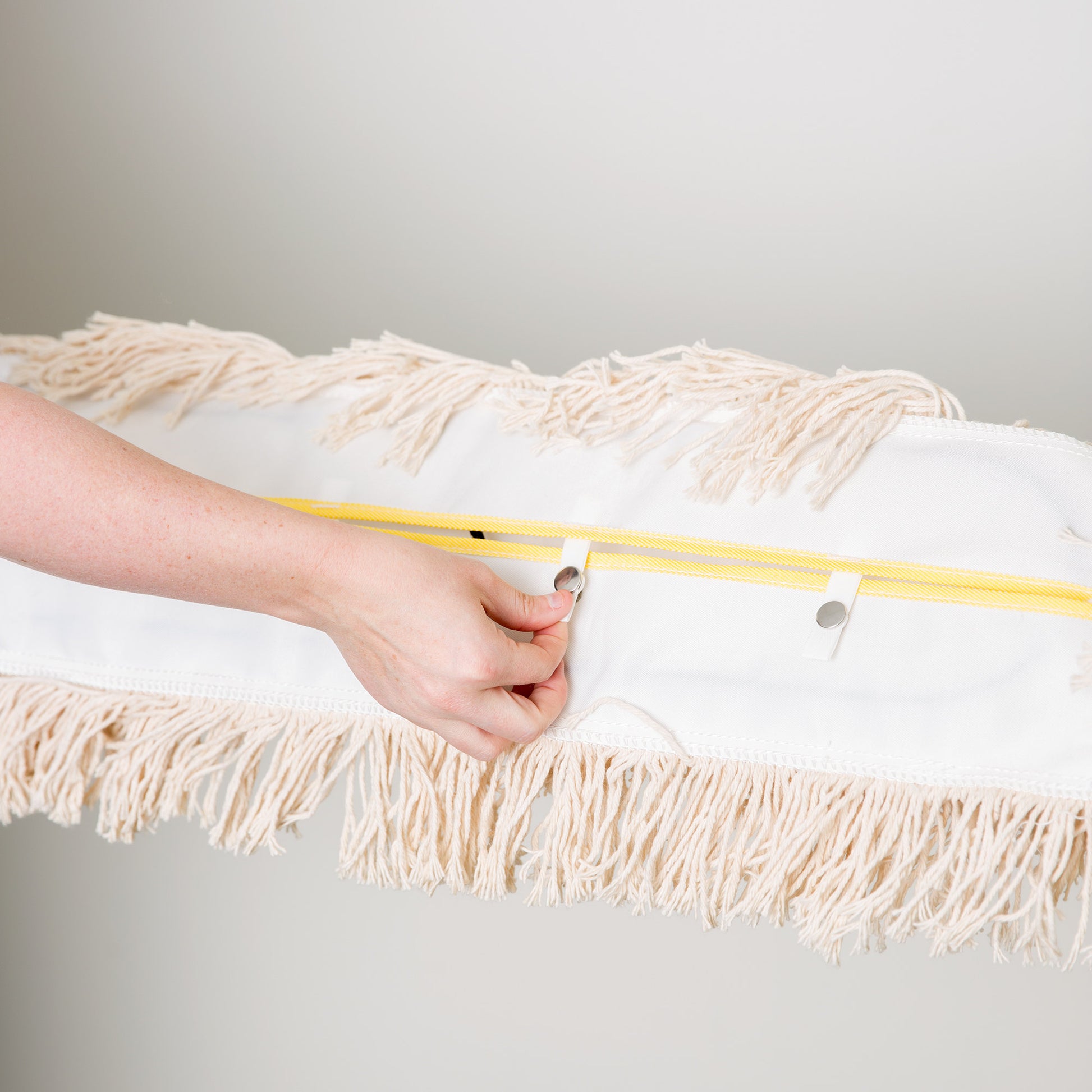 The Carlisle 364753600 36" x 5" dry dust mop pad features a heavy, pre-shrunk canvas body and full-sewn construction for durability and long life. The dense fill with sturdy long-staple cotton yarn makes this mop head ideal for heavy dusting applications such as kitchens, schools, stores, etc. Plus the Carlisle 36" x 5" mop pad is fully launderable to save you money.
