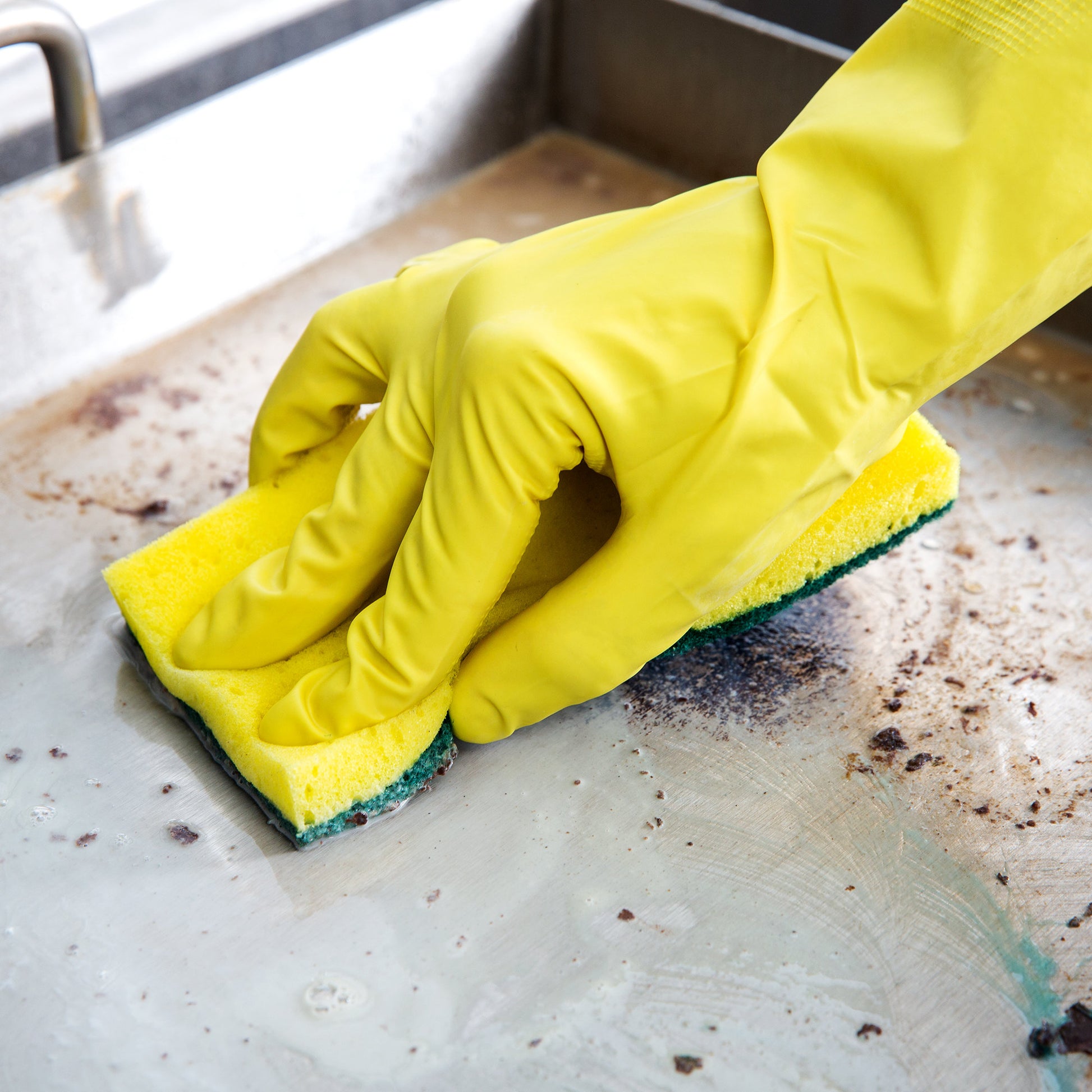 Thanks to the spongy yellow side and scrubber green side, this item is perfect for removing grease and food stains, as well as cleaning ovens, walls, countertops, sinks, bathrooms, and tables.