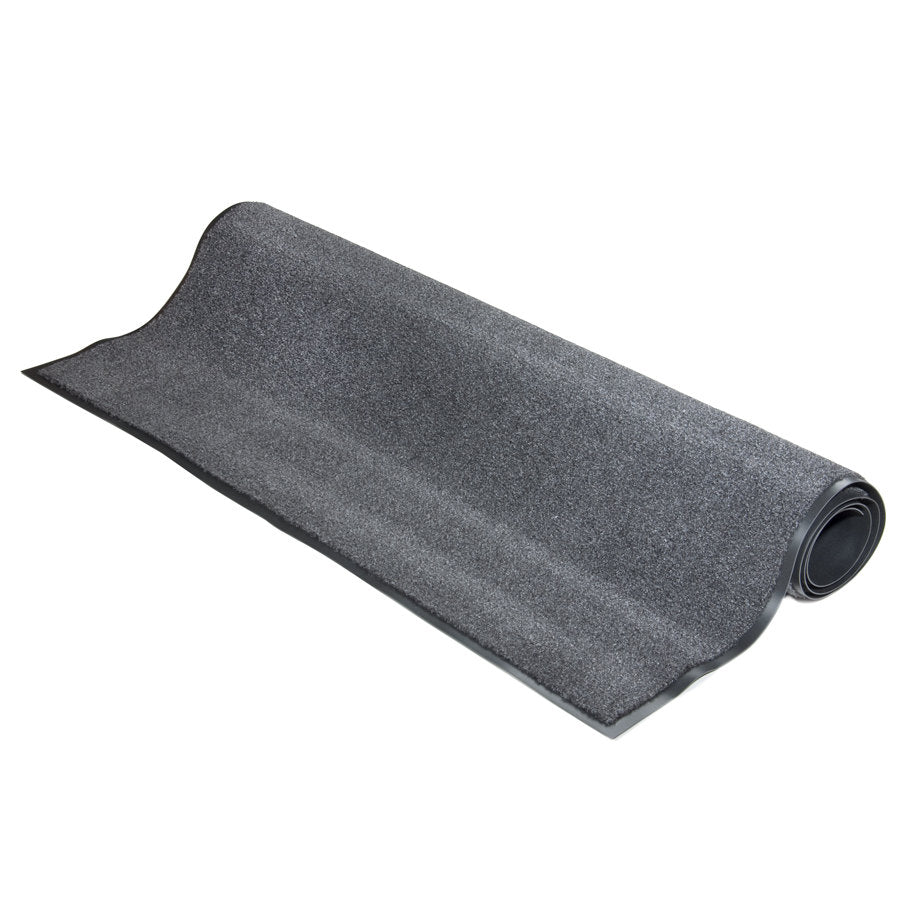 Ideal for use in entrances, classrooms, transition areas and more, this Cactus Mat Catalina standard-duty 1437M-L46 4' x 6' charcoal-colored carpet floor mat will trap dirt and moisture to protect your floors and enhance the safety of everyone who passes through your business! This entrance mat's fade-resistant olefin fiber material has the ability to hold more than 1 gallon of water per square yard and is vinyl-backed to prevent scratches and scuffs from appearing on your floor.