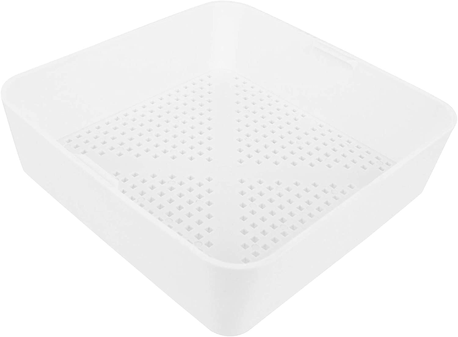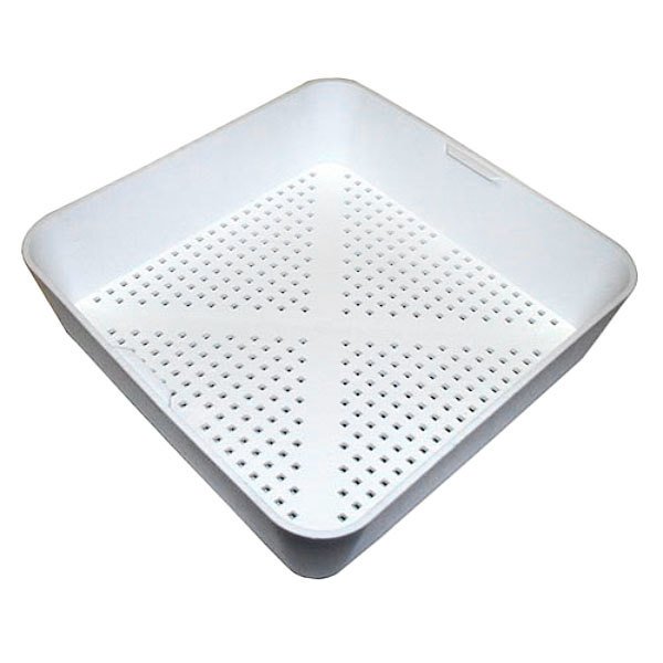 Keep your floor drains clear of debris and functioning properly with this All Points 32-1422 drop-in floor drain strainer basket! Featuring a 6 1/2" x 6 1/2" basket that measures 3" deep, this product fits into compatible floor drains with ease. It is made from white plastic, and features 3/16" holes that allow maximum water flow while keeping large pieces of debris from going down the drain.