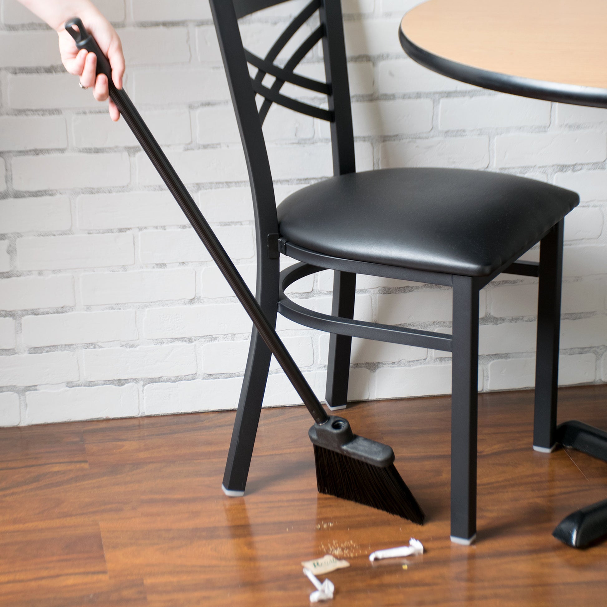 The Carlisle 3686003 Duo Sweep lobby broom has 4" stiff, unflagged, black filament bristles for heavier sweeping, a durable metal handle, and is 36" tall. The Duo Sweep lobby broom is extremely convenient for those of different preferences on the angle of sweeping, because it is made with two handle holes; one angled and one upright. The Carlisle 36860 Duo Sweep lobby broom is great for use in convention centers, theme parks, and malls when used with lobby dust pans (sold separately).