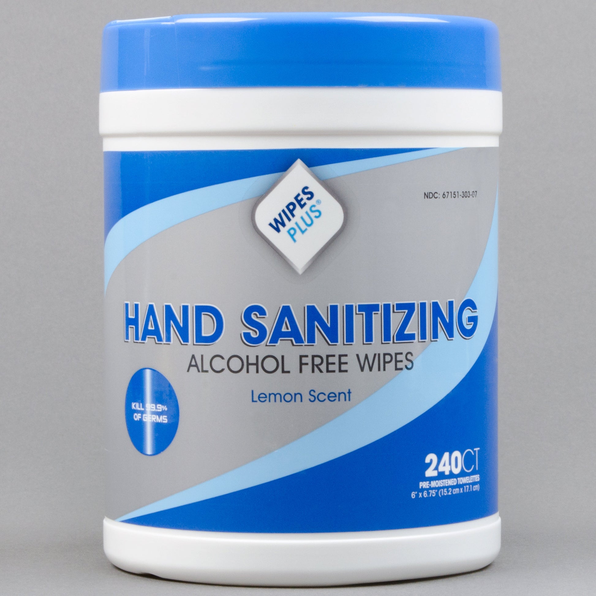 WIPESPLUS 240 COUNT LEMON SCENT ALCOHOL FREE HAND SANITIZING WIPES