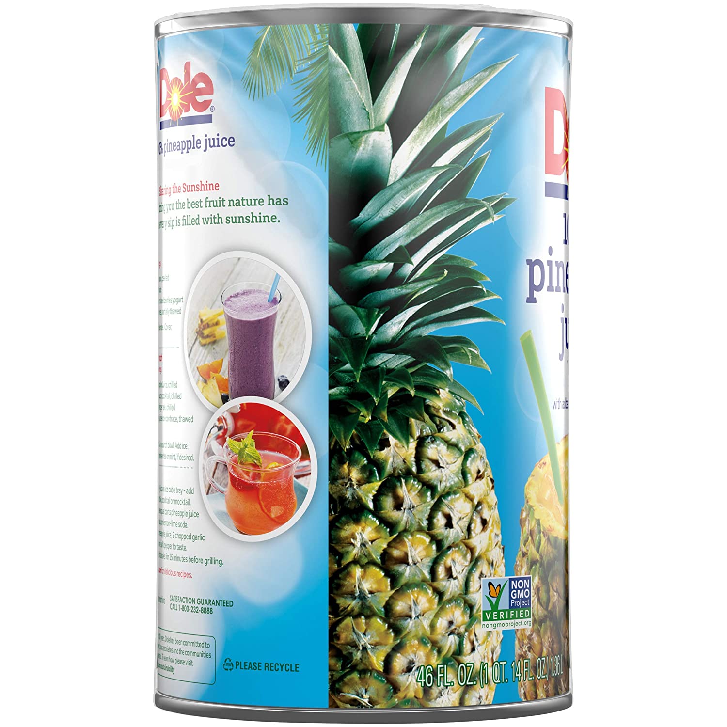 - Dole canned pineapple juice is 100% refreshing and 100% GMO free