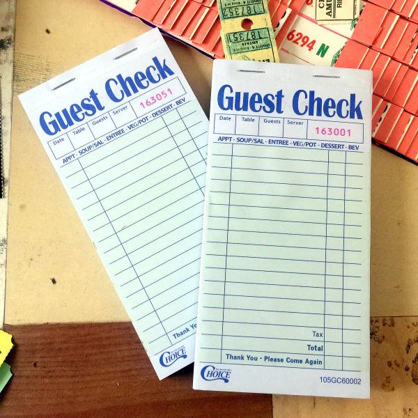 Fields at the top of each sheet allow your staff to record the date, the table number, the number of guests, and the server.