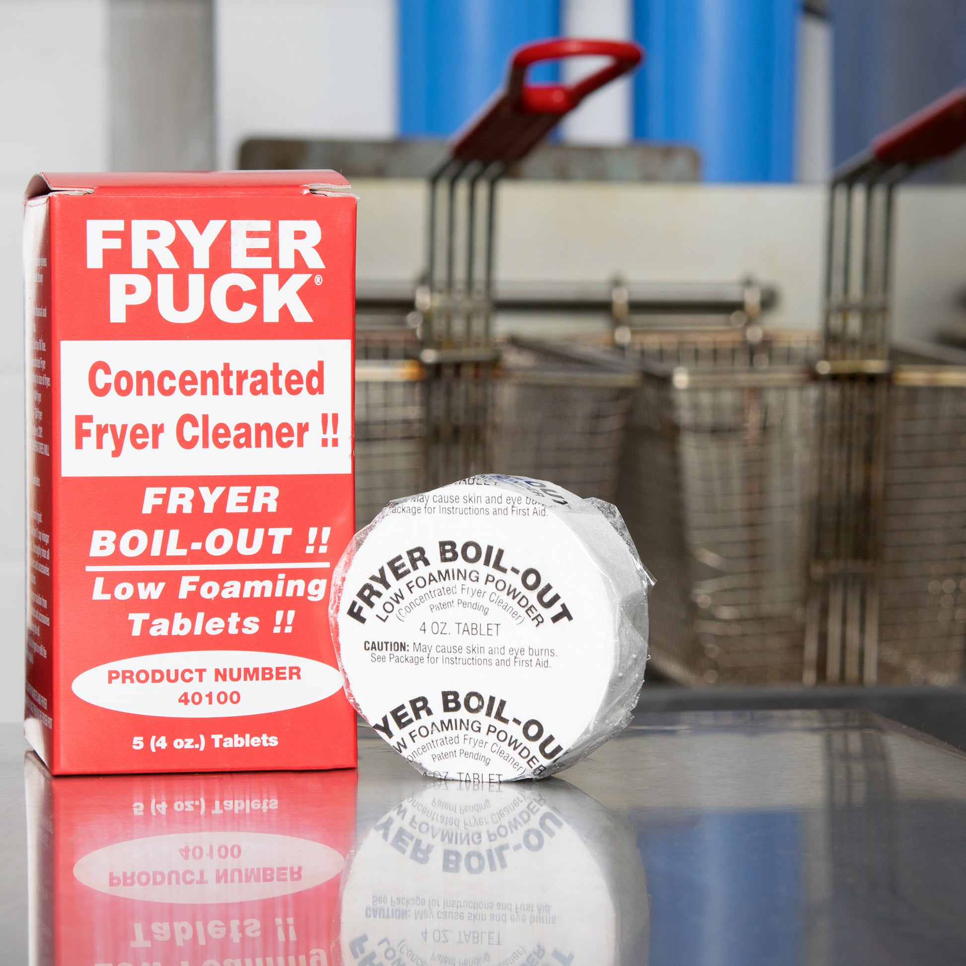 Whether you're frying french fries, donuts, or chicken wings, Fryer Puck deep fat fryer cleaning tablets will make quick work of even the toughest jobs. Its heavy-duty concentrated formula will improve oil life without marring the taste of your food. Fryer Puck can handle heavy soil, fat, and grease deposits, and even works great with pressure cookers. This product also features a low-foaming design that reduces boil-over and eliminates the possibility of messy cleanup. If you own a food truck, concession stand, or snack stand, Fryer Puck deep fat fryer cleaning tablets are the perfect choice for your business.