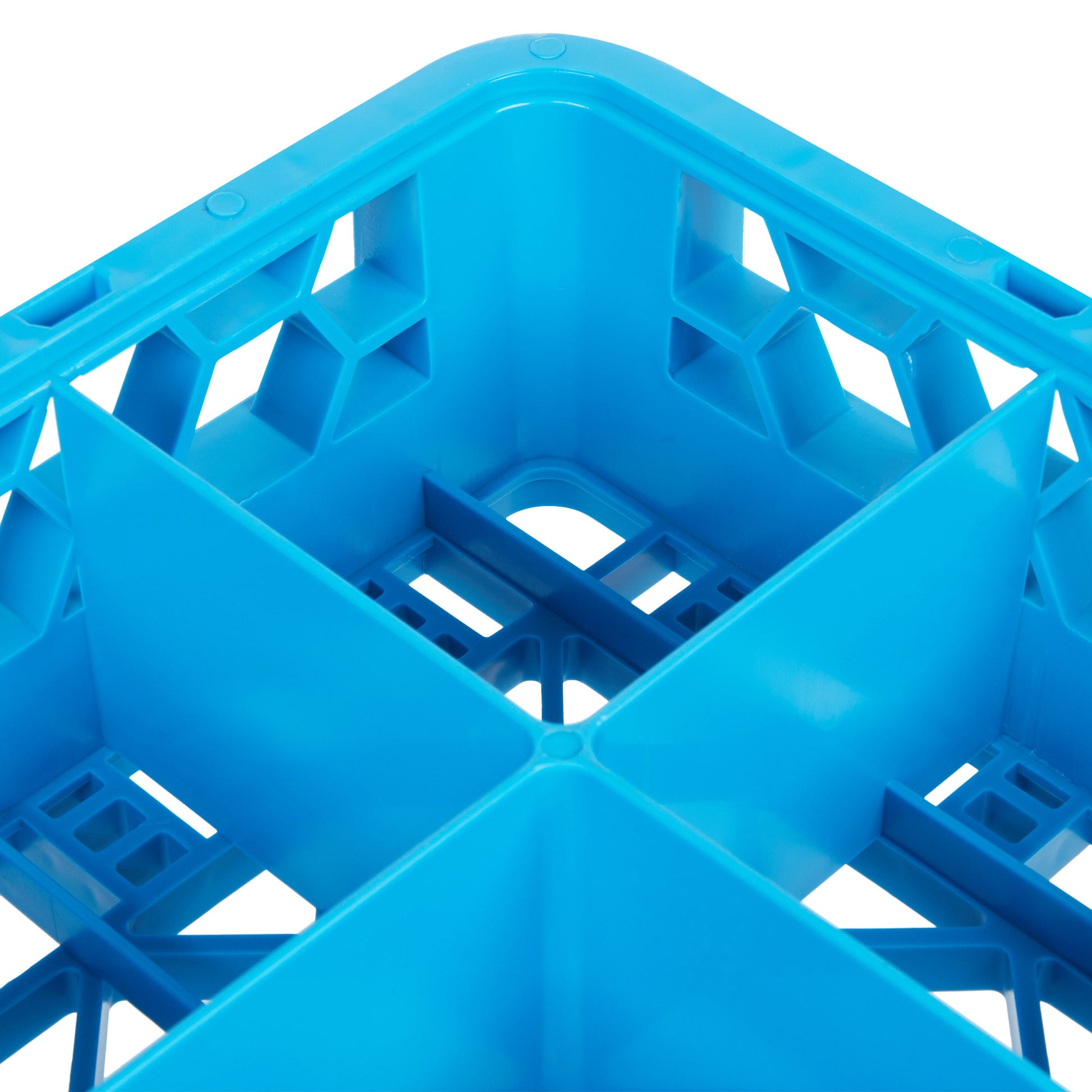 This Carlisle RC1614 16 compartment cup rack features sixteen 4 5/16" x 4 5/16" compartments, perfect for holding larger diameter cups and mugs in a tilted position. This unique position promotes thorough washing of rims and interiors, while encouraging bases to drain more efficiently during ware washing. This 16-compartment cup rack is made of double wall, reinforced rib polypropylene design, ideal for years of heavy use.