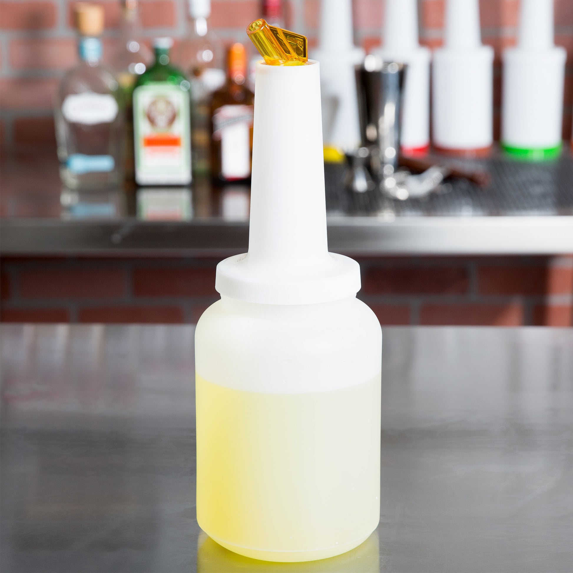 Both innovative and versatile, this set offers you an efficient way to create mixed drinks at your bar or add a splash of oil to signature recipes in your kitchen. Not only is each component removable and easy to clean at the end of the night, the spout and cap are also orange so you can use it in combination with other color-coordinated liquids for fast product identification. Add this convenient set to your restaurant or catering kitchen to effectively store and pour a variety of drink mixes, sauces, vinegars, and freshly-squeezed juices!