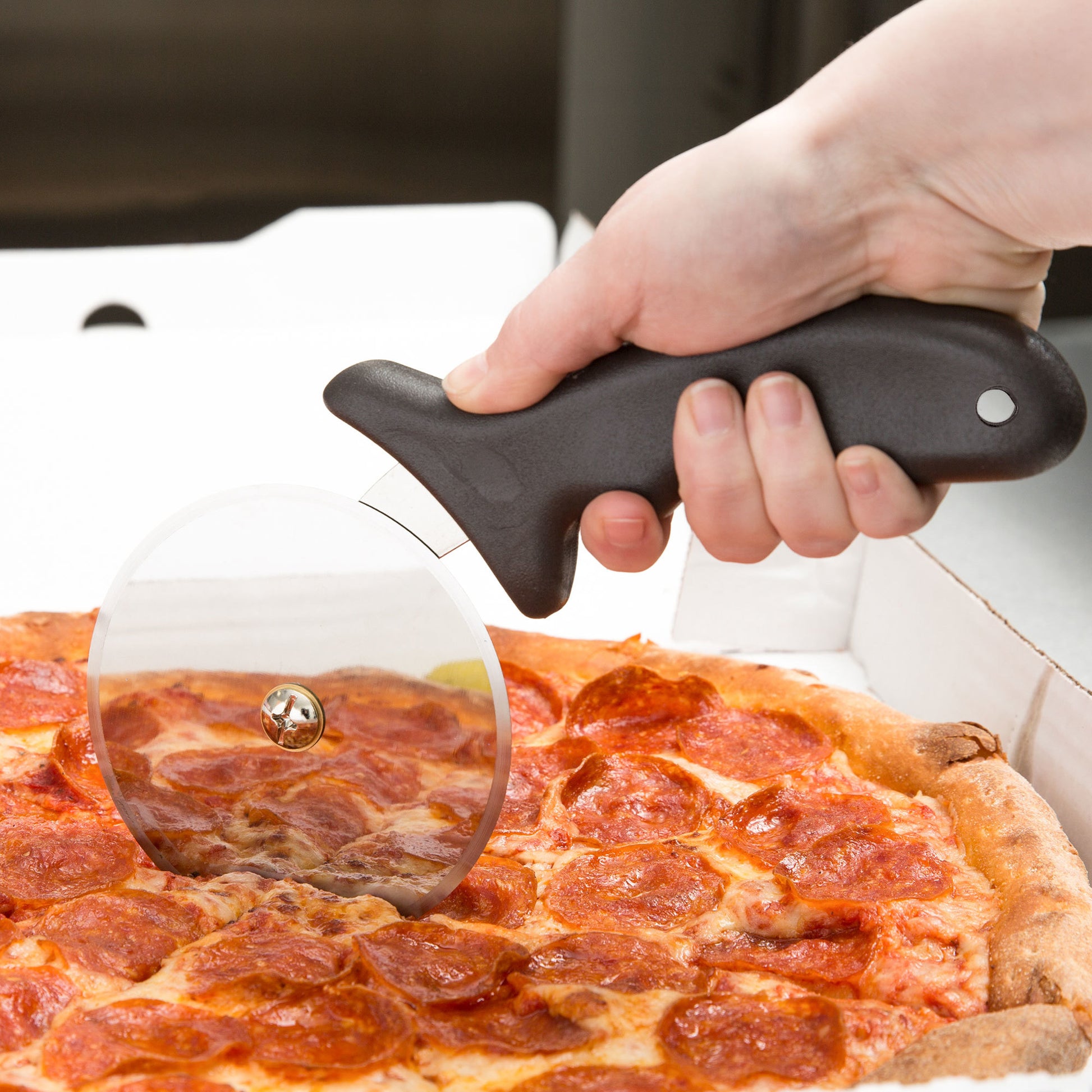The large, 4" diameter of this pizza cutter wheel makes it the ideal choice for quickly slicing large pizzas.