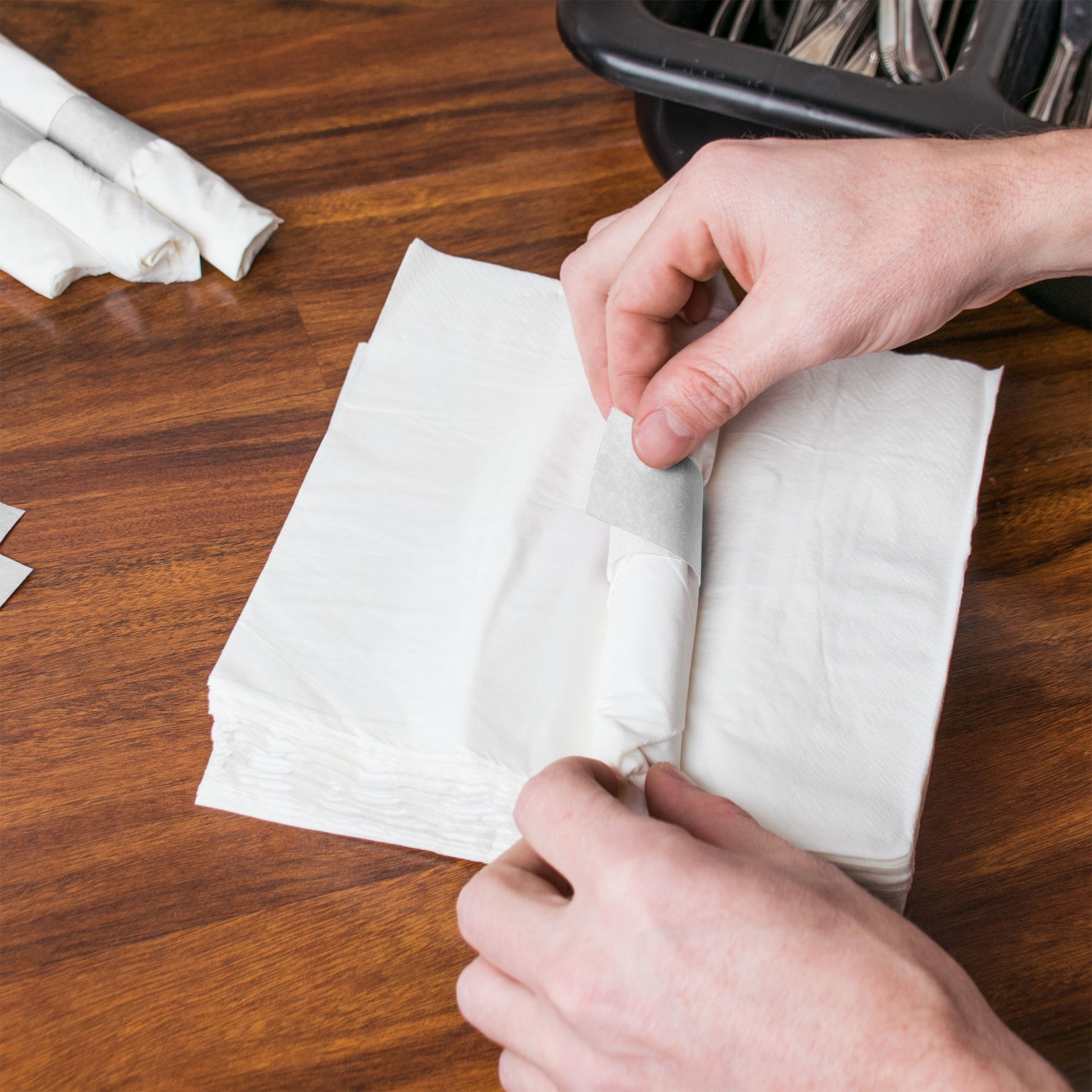 On either end of the band, self-sealing glue is present, providing a tight seal all the way around the napkin roll. There's no need for additional adhesion! This glue ensures the strap will not peel back or unravel.