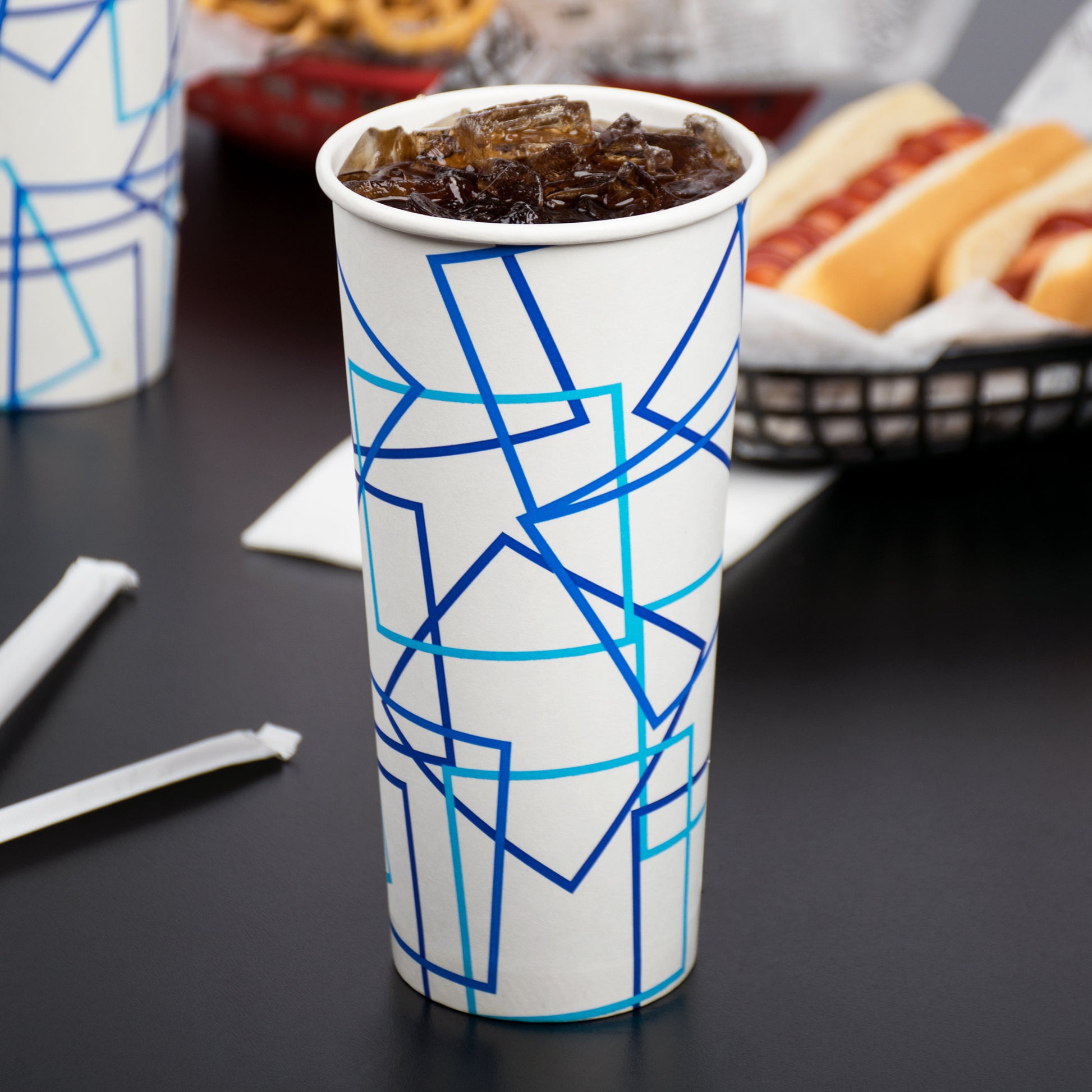 Great for use with soda, iced tea, water, and punch, each cup offers superior moisture resistance so that cup walls stay strong, while attractive printed graphics on the cup's exterior add a pop of personality to your presentation. The 22 oz. capacity is perfect for large drinks, and it makes for a great addition to your concession stand, food truck, ice cream shop, or restaurant!