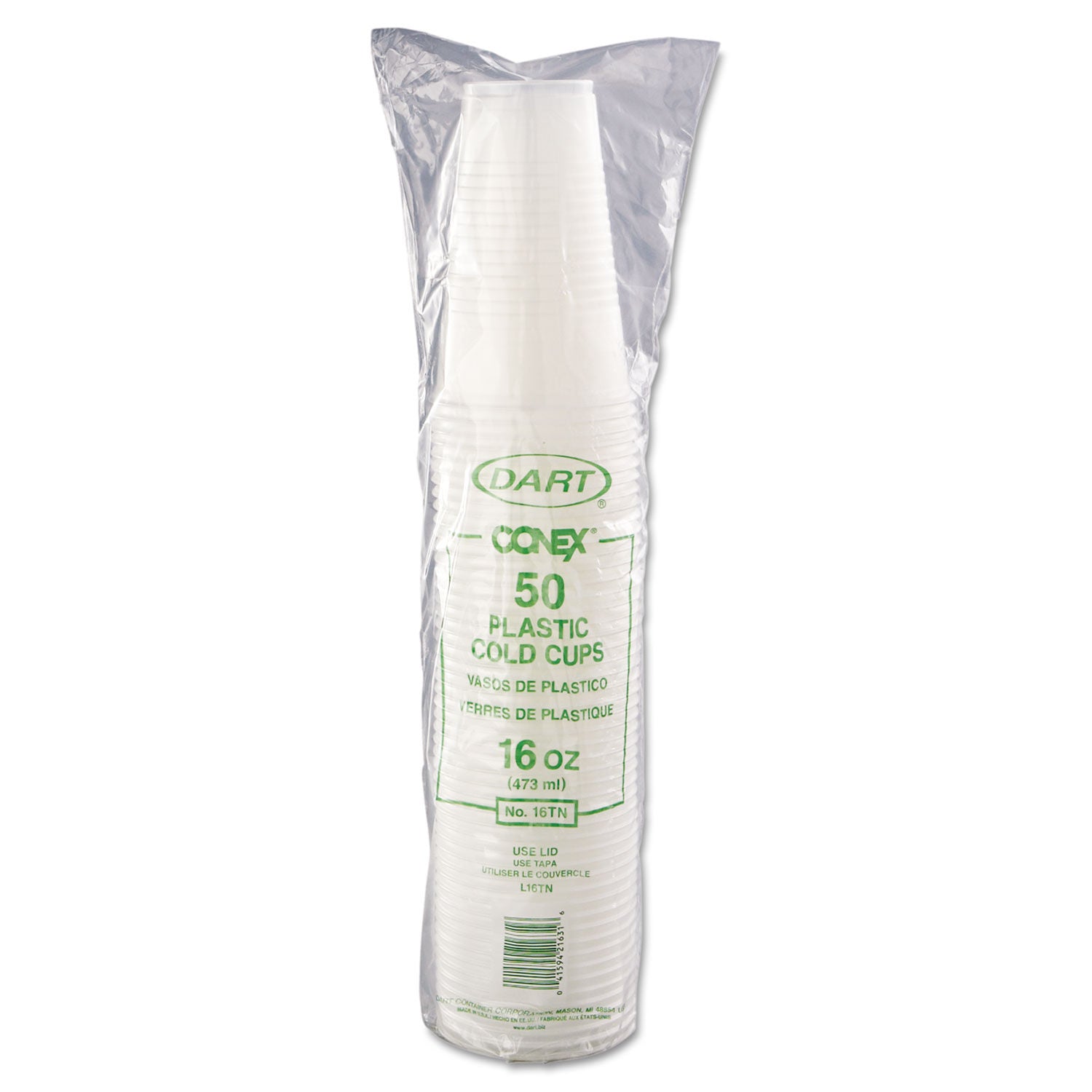 Dart Container Conex Plastic Cold Cups, 16-oz., Clear, 50 Cups per Sleeve, 20 Sleeves per Carton, 1,000 Cups
