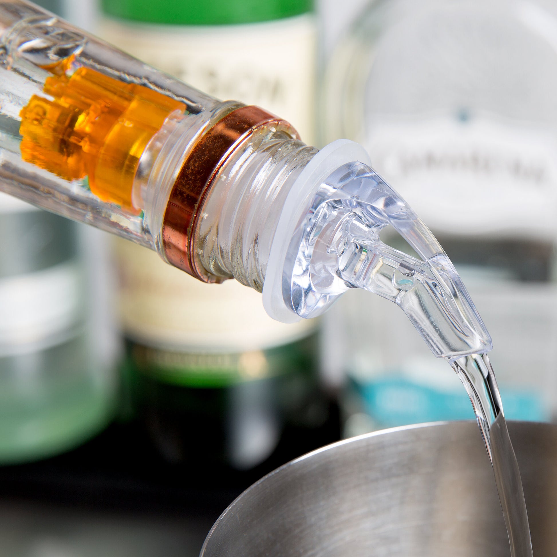 With this .5 oz. measured liquor pourer, preparing mixed drinks has never been easier! This liquor pourer ensures fast but measured pouring with ball bearings controlling the pour from inside the pourer. These ball bearings offer approximate portions and less spillage for increased efficiency and higher profits. At the same time, a orange tail easily distinguishes the pourer from other sizes for instant identification behind the bar. Your bartenders will be able to work quickly to get drinks poured in no time! Plus, thanks to the clear spout, the pourer will maintain a professional appearance longer than those with colored spouts, disguising wear and tear while your staff works.
