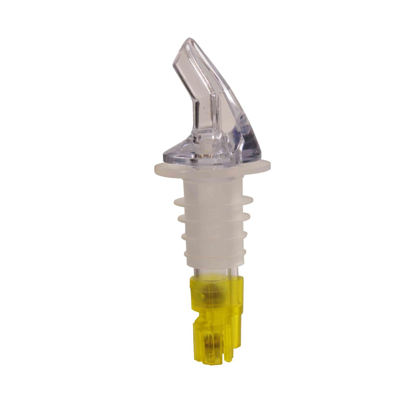 Thunder Group PLPR150M, 1.5 Oz Plastic Yellow Measured Liquor Pourer Without Collar, DZ can be used to improve the efficiency of your bar saving both time and money in the preparation of drinks. Designed with ball bearings, bartenders can accurately and quickly measure approximate portions of liquor for mixed drinks or cocktails. Thanks to its plastic pour spout, this pourer ensures spill-free serving. For added convenience, this measured pourer has a colored tip to easily distinguish it from pourers of different sizes.