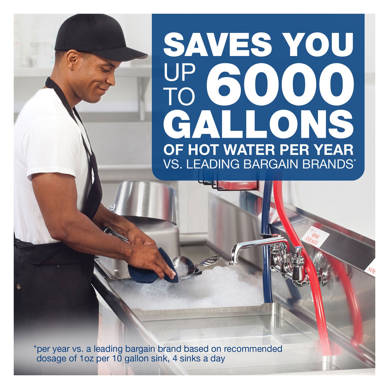 Highly concentrated and formulated to remove greasy soils, this commercial strength Dawn dish detergent has the grease fighting power of Dawn to clean pots, pans and utensils thoroughly, leaving them squeaky clean. Dawn Pot & Pan Detergent is made from a blend of surfactants with the power to cut through and emulsify grease. The long lasting suds allow 35% less sink changeover, saving on labor and hot water usage by 6,000 gallons per year, making this an economical choice for any residential or commercial food service setting. As a result of its highly concentrated formula, Dawn dish detergent allows the user to clean 58% more greasy dishes than the leading competitor, reducing the cost per use. Dawn Pot & Pan Detergent can also be diluted and used as an all purpose cleaner. Purchase bulk Dawn dish soap to stock up and save!