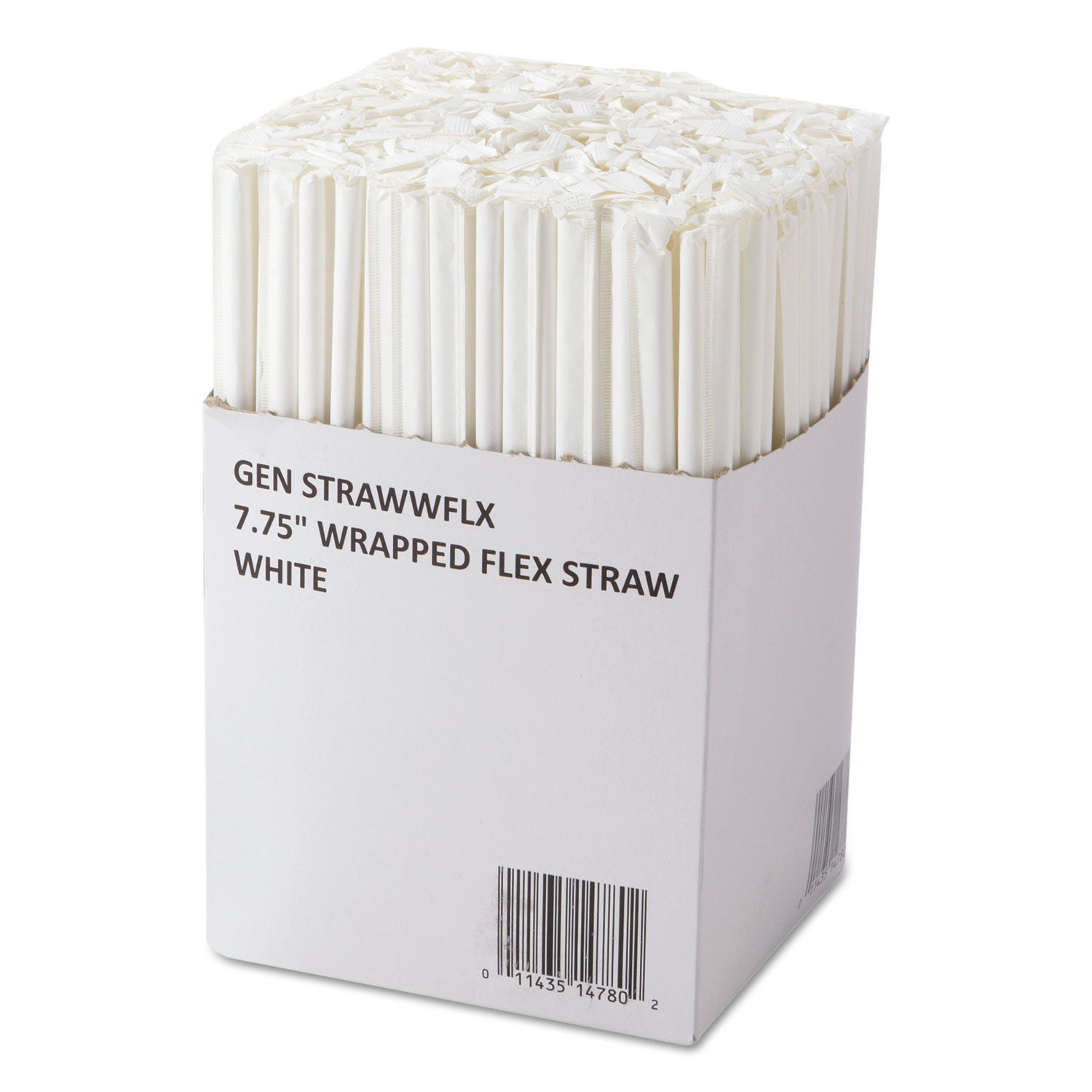 Gen Wrapped Flex Straws, 7 3/4", Polypropylene, White, 25/Carton