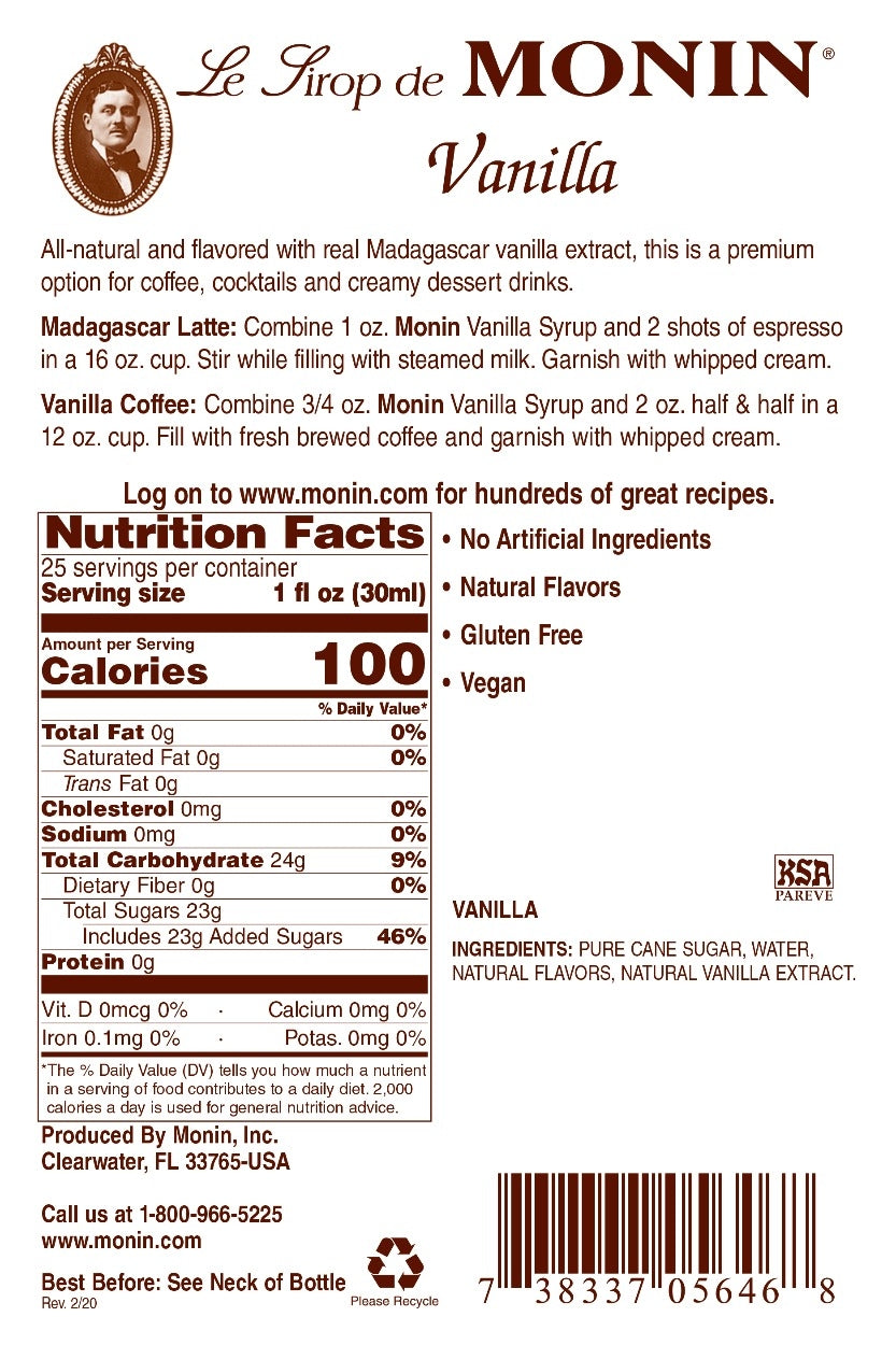 Made with premium, real Madagascar vanilla, this syrup delivers a smooth, custard-like vanilla flavor with a sweet vanilla extract aroma. It provides a quick and easy way to add authentic flavor to a variety of beverages, from lattes, mochas, and dessert cocktails to shakes, smoothies, and sodas. You can even use this syrup to create delicious dessert sauces, icings, and flavored whipped cream!