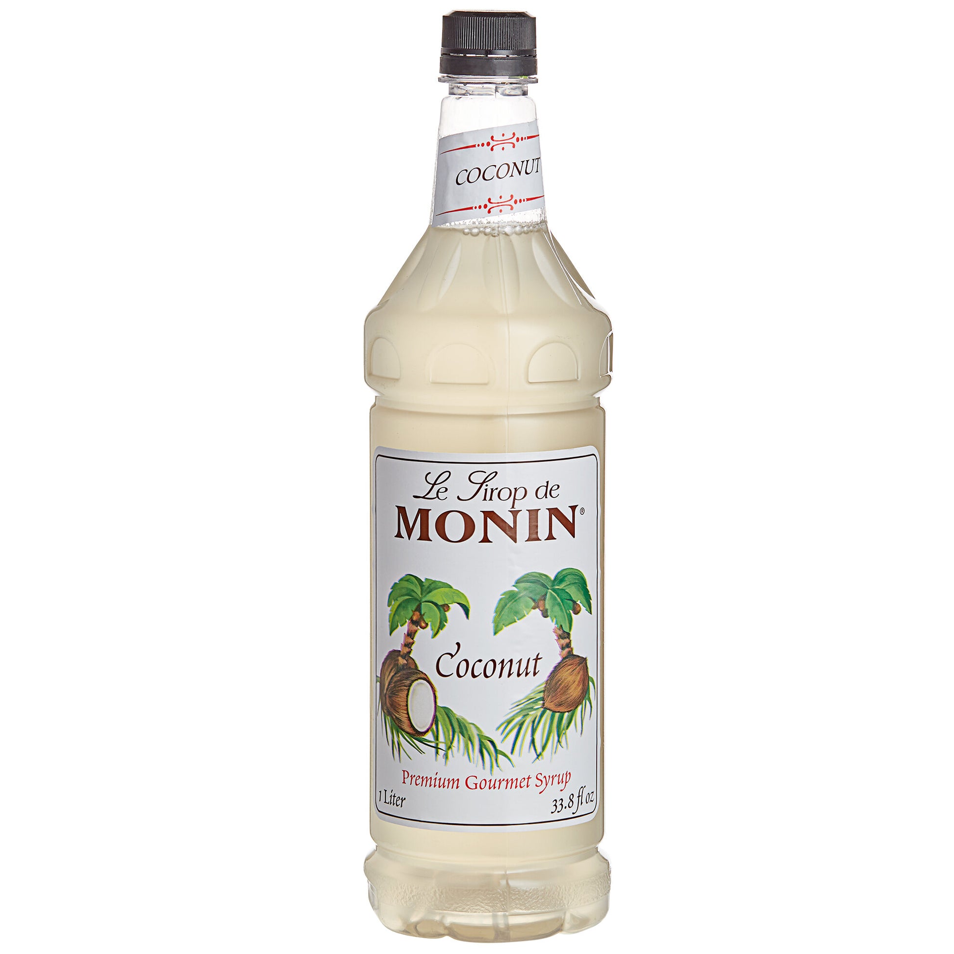 Containing quality ingredients, Monin 1 liter premium coconut flavoring syrup is a quick and easy way to add new flavors to a variety of recipes! Add a splash of this coconut syrup to your most popular beverages and it's sure to please your guests. The rich, tropical taste of this flavoring syrup will enhance the fruity profile of your mixed or blended drinks without overpowering them or being too sweet. Plus, it's produced with pure cane sugar and no artificial flavors, making it an all-natural syrup with a balanced blend of flavor and aroma that will instantly upgrade your coffees, smoothies, and shakes.