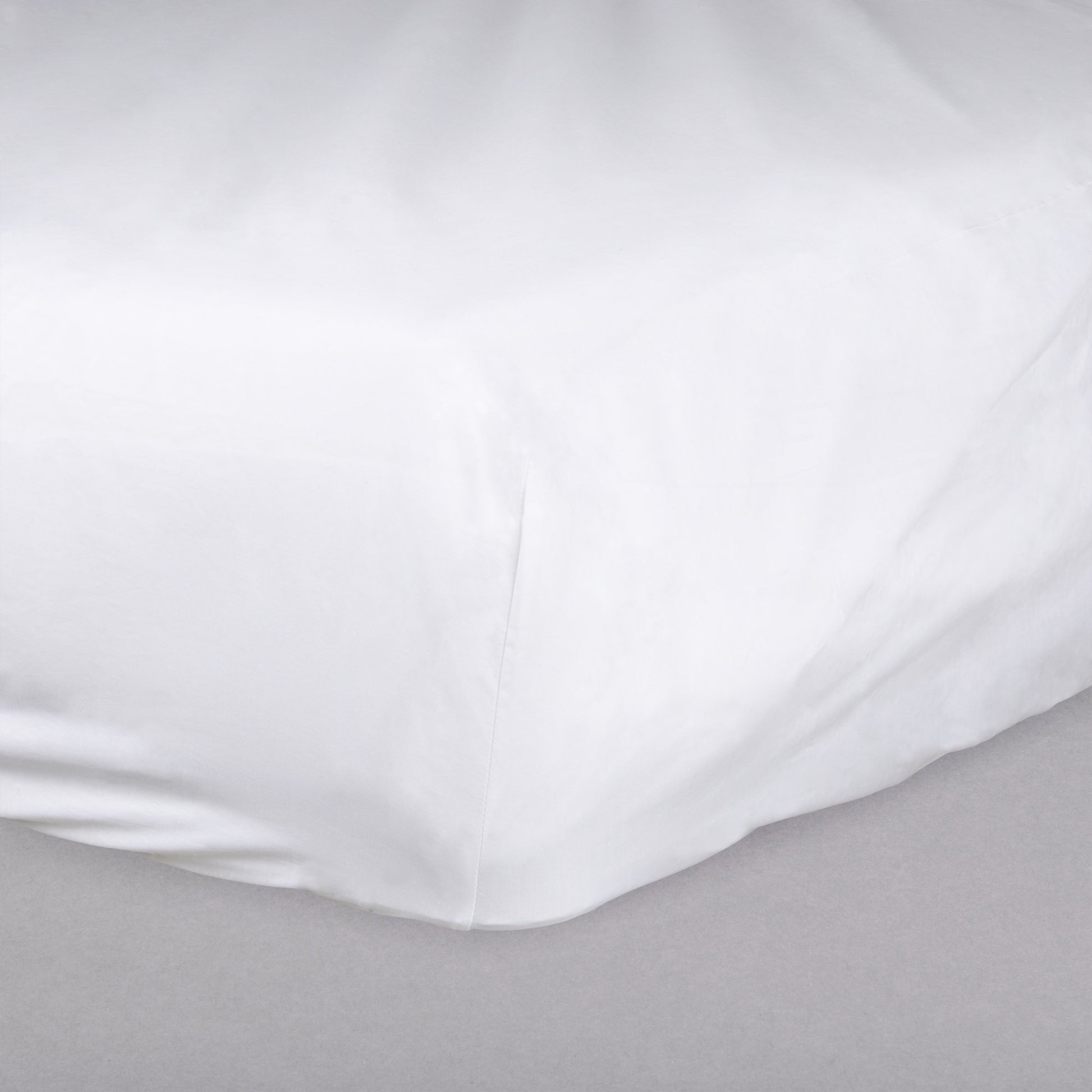Add a familiar feel to your home-away-from-home with this classic GANESH T200 Superblend queen size fitted sheet. This fitted sheet is woven from a soft, cotton-rich 60/40 cotton-polyester blend with a 200 thread count styling. It features pilling-proof, anti-shrink, and wrinkle-free properties for easy care, as well as the softness your guests depend on for a good-nights rest. For your convenience, this bright white sheet is designed with a discreet brown hem for fast size-identification too.